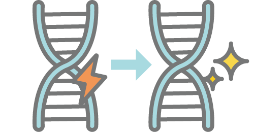 調整 - NAD+は、細胞の修復やDNAの修復に関わる酵素を活性化します。これらの酵素はDNAの傷を修復したり、細胞の寿命を調整したりするため、NAD+は“細胞を若く保つ鍵”として注目されています。