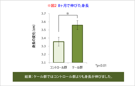 これらの結果から、ケールジュースを習慣的に摂取することは、子どもの身体発育を促し、健康維持に役立つことが期待されます。
