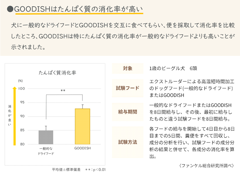 「GOODISH(グーディッシュ)」とは、愛犬のために考えつくされた、良質(GOOD)で特別な一皿(DISH)の意味を込めてネーミングしました。