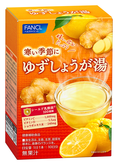 株式会社ファンケルは11月18日(火)から、「ゆずしょうが湯」(1箱10本入り/価格:1,235円<税込>)を通信販売と直営店舗にて数量限定で発売します。 同製品はお湯に溶かして飲む粉末タイプのサプリメントです。ビタミンCとビタミンDに加え、シールド乳酸菌®※を配合しており、ホットドリンクで体を温めながら冬場の体調管理をサポートします。寒い冬にぴったりなゆずしょうが味で、乾燥が気になる季節に喉を潤しながら、おいしくお召し上がりいただけます。