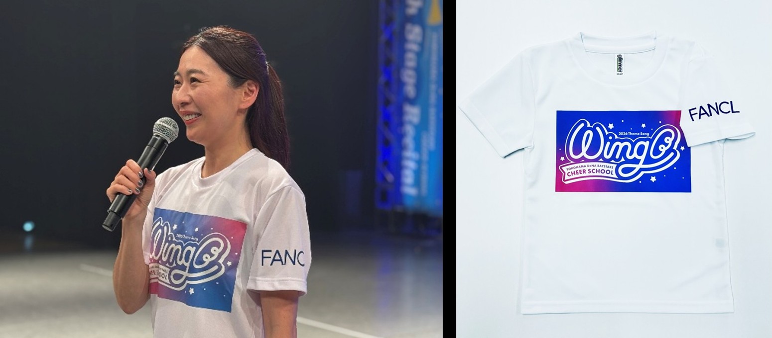 2026年度のチアスクールオリジナルレッスンTシャツに、当社のロゴが入ります。今年のデザインテーマは、「Wing(ウイング)」。「翼」や「羽ばたき」をイメージし、スクール生一人ひとりが大きく夢に向かって成長してほしいとの願いが込められている中、当社も一緒に応援していきます