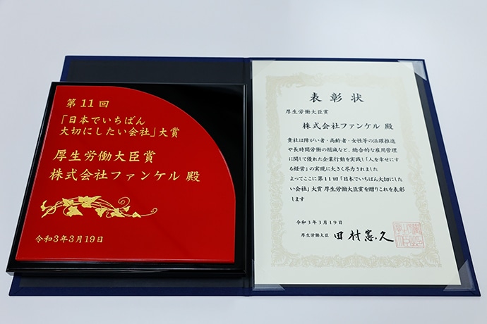 第11回「日本でいちばん大切にしたい会社」大賞「厚生労働大臣賞」受賞(2021年3月19日)